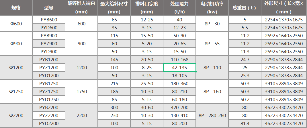 圓錐破碎機屬于二級破碎設(shè)備,進料尺寸一般在35-300mm之間,是目前技術(shù)比較先進的破碎設(shè)備,通過層壓破碎原理,成品粒型好,因此對于質(zhì)地較硬的花崗巖可以使用圓錐破碎機。粗破后的花崗巖石塊可以再次進入圓錐破碎機二級破碎,圓錐破碎機的設(shè)備部件均是耐磨件,耐磨性好,維修成本低,且圓錐液壓破碎機自動化程度更高,操作方便。圓錐破碎機不同型號處理能力不同,具體可以依據(jù)生產(chǎn)線的產(chǎn)能和規(guī)模來選擇。