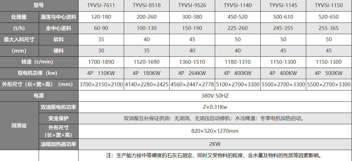 圓錐破碎機出來的石料一般在5-60mm左右,如果需要的是粒度更小的砂子則需要再次通過沖擊式制砂機制砂,TY系列立軸沖擊式破碎機是選擇四口葉輪設(shè)計,比三口輪的破碎效率更高。沖擊破碎機的型號區(qū)別主要在于機器大小功率不同處理量不同,主要可以依據(jù)規(guī)模大小來選擇。