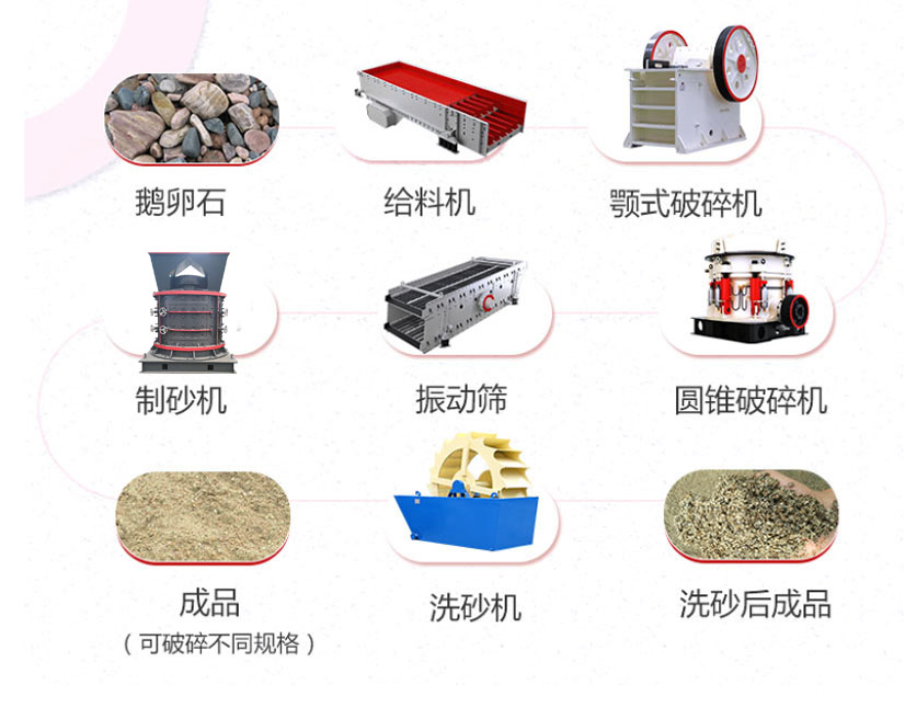 如果是一條完整的砂石骨料生產(chǎn)流程包括振動給料機(jī)喂料-顎式破碎機(jī)粗破-圓錐破碎機(jī)二級破碎-振動篩篩出不符合大小的再次送進(jìn)圓錐破碎機(jī)破碎-制砂機(jī)制砂-振動篩篩分-洗砂機(jī)-成品。