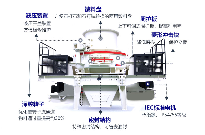 在設(shè)備選型時,可以選擇新型環(huán)保型制砂機,這里我們可以看下天宇重工生產(chǎn)的沖擊式制砂機,那么他是如何做到環(huán)保的呢?