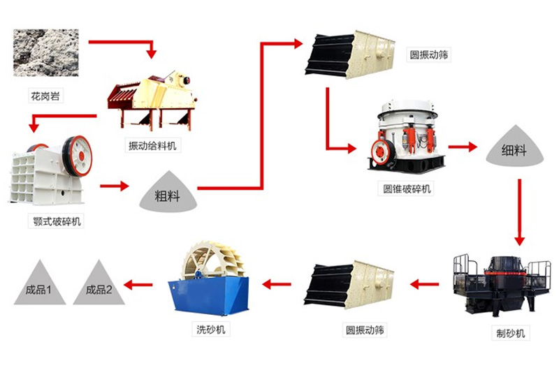 花崗巖莫氏硬度相對較高,質(zhì)地較硬,選擇圓錐破碎機(jī)破碎效率更高且成品粒型也會更好一些,圓錐破碎機(jī)的時(shí)產(chǎn)量在120-855噸左右,可以根據(jù)生產(chǎn)線規(guī)模選擇合適的型號。除了中碎設(shè)備之外生產(chǎn)線中還需要額外配置給料機(jī),輸送機(jī),顎式破碎機(jī)、制砂機(jī)和振動篩等設(shè)備,時(shí)產(chǎn)量需求不同,配置設(shè)備型號也不同,關(guān)于生產(chǎn)線配置也可以咨詢天宇客服為您在線解答。
