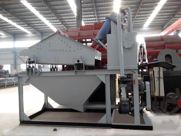 細沙回收機一般和輪斗式洗砂機配合使用,用于回收洗砂機種流失的砂石,又名細砂收集機、泥沙分離機,目前現(xiàn)有的人工砂生產(chǎn)線,大多都會存在細砂(0.16mm以上的顆粒)流失的情況,有的甚至會造成20%以上流失,細砂回收設(shè)備是依據(jù)以上問題而設(shè)計的具有行業(yè)優(yōu)勢的細料提取裝置,細沙回收機可通過改變離心泵轉(zhuǎn)速、改變砂漿濃度,調(diào)節(jié)溢流水量,更換出砂嘴來實現(xiàn)細度模數(shù)調(diào)整,從而完成清洗、脫水和分級三種功能。